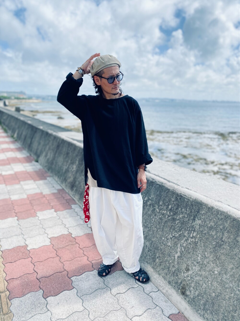 海バックは映えますね✨ tops 20's linen pants no brand shoes vanni scarf 80's