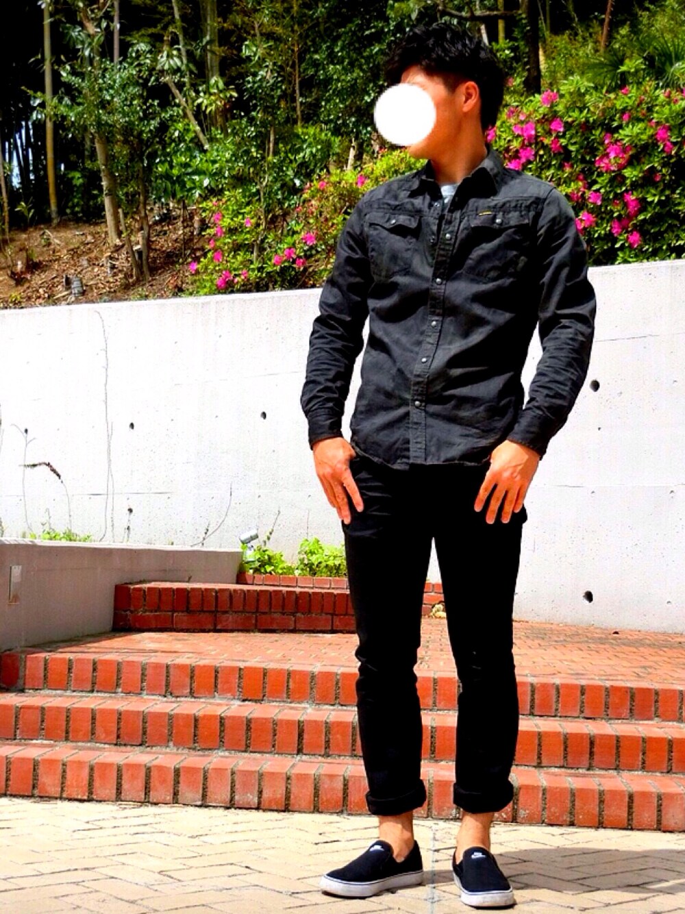 今日はブラックコーデ😎 写真じゃ分かりにくいんですけどシャツは迷彩柄なんです笑 いいね・コメントお願いします😘