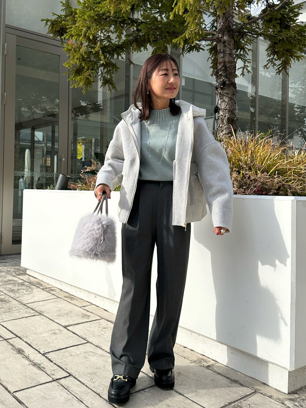daimon(ノーリーズアウトレット THE OUTLETS HIROSHIMA店)のその他アウター「シャギーウール×タフタ フードコート」を使ったコーディネート