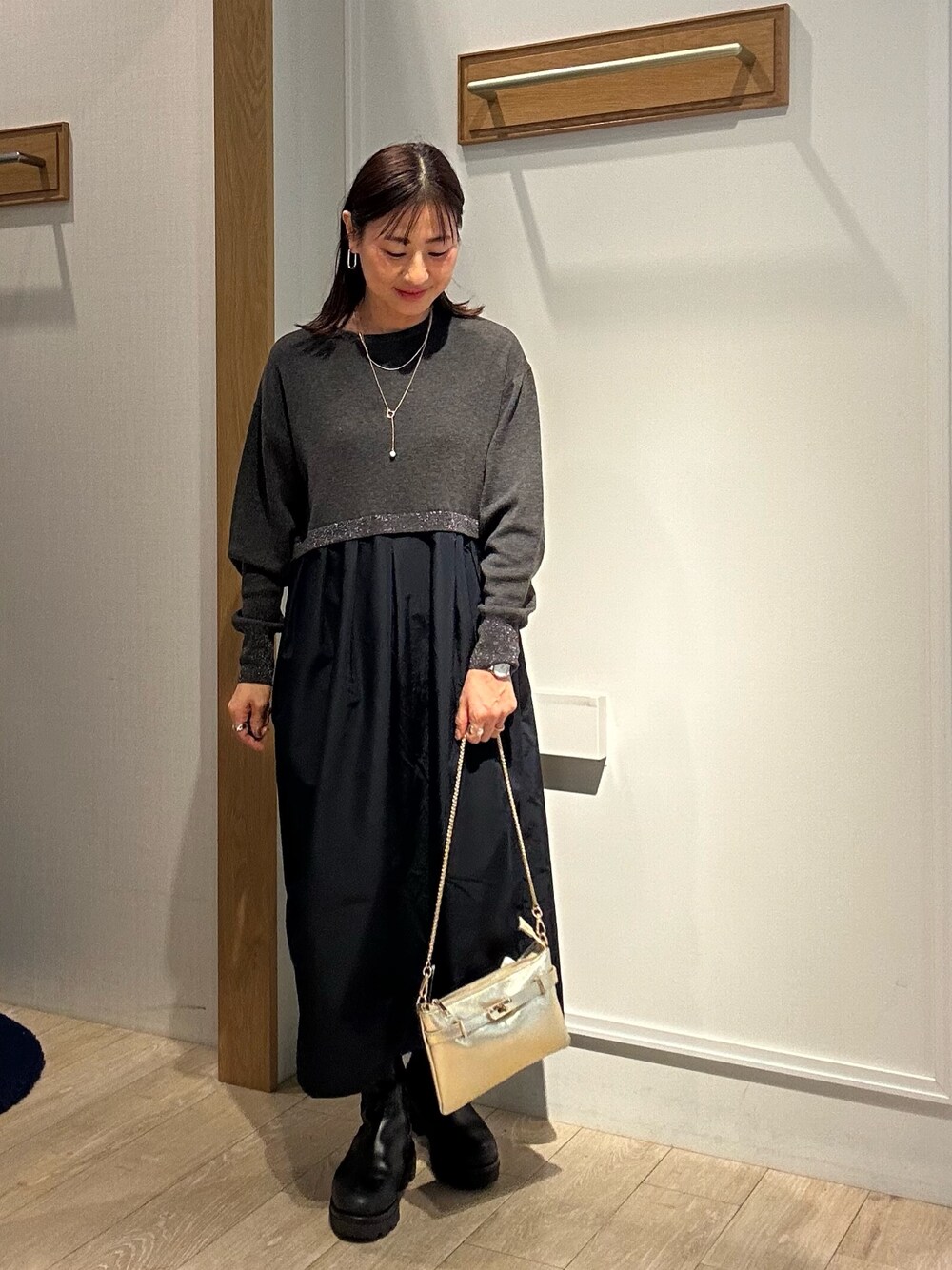 daimon(ノーリーズアウトレット THE OUTLETS HIROSHIMA店)のワンピース「ドッキングニットワンピース」を使ったコーディネート