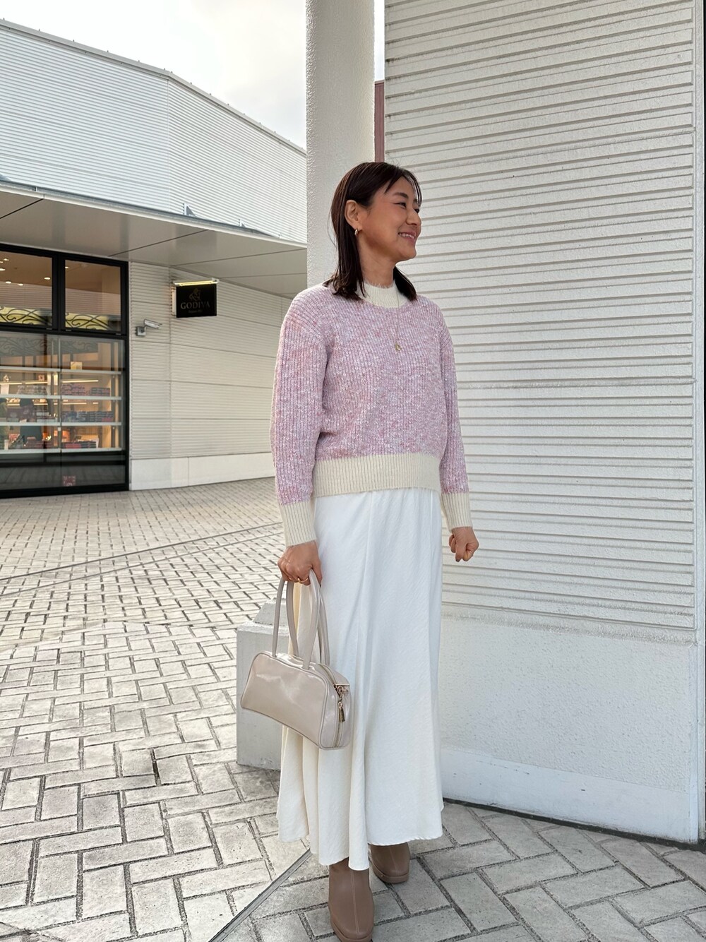 ラメMIXヤーンプルオーバーニット 首元、袖口、裾がフェザーヤーンで配色された ふわふわニット ミックスカラーが華やかに🩷 着丈はコンパクトなので低身長さんにもオススメです! 新作のバイアスハギギャザースカート フレアーロングスカートはマットな質感で 柔らかく薄手の素材ですが 冬にはざっくり編まれたニットや ふわふわニットと合わせる異素材コーデが とても可愛いです🩷 ウエスト総ゴムなのでとても楽✨ 腰回りはスッキリしており、 裾に向かってフレアー感がとても綺麗です 裏地がついているので透け感はあまり気になりません ブーツと合わせていますが カジュアルにスニーカー合わせもオシャレです♪