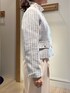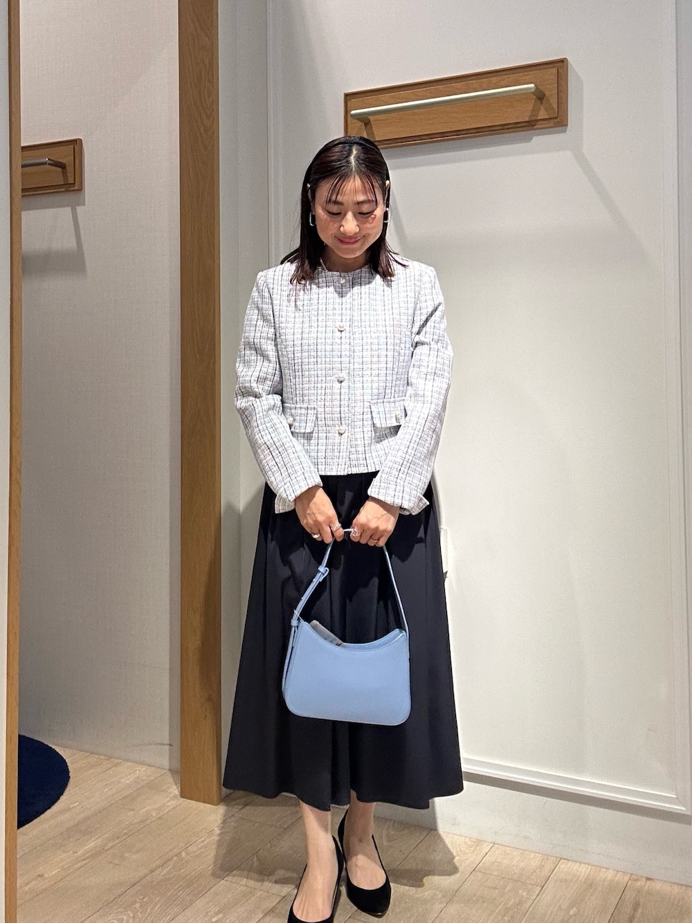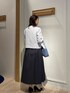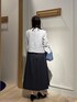 コッパーラメツィードジャケット きちんと見えする華やかジャケット! コンパクトな丈感のジャケット✨ ラメ糸が華やかに見せてくれます 大きめなパールボタンにゴールドが縁取りされているので クラシカルな印象に✨ フラップポケットは飾りでウエストの位置を 高く見せてくれます! お袖口はスリット入りなので 折り返して着ていただくと動きが出て 素敵に着こなして頂けます😊 ホワイトに水色が混ざったツイードに ラメ糸が入っているので 華やかさがあり 入園・入学式に着て頂くことができます✨ 合わせたスカートは普段使いもできる 光沢感のあるギャザースカート 程よいふんわり感が上品に着て頂けます ウエスト総ゴムなので楽に履いて頂けます 着丈は足首がほっそり見える着回ししやすい丈感です こちらはリバーシブルなので ネイビーとラベンダーカラーの2通り楽しめる 万能スカートです✨