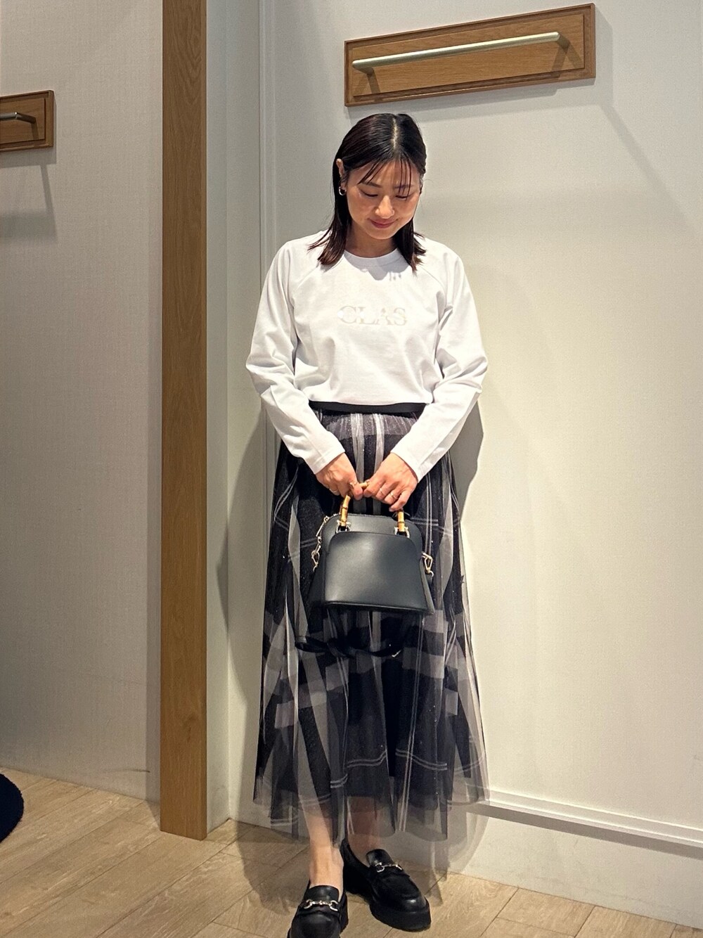 ポンチローマ ラグランスリーブロゴプリントT 胸元のロゴプリントがポイントになってくれるTシャツ✨ 首周りが詰まっているので安心感があります 柔らかな風合いで程よい肉厚感です ラグランスリーブなので肩を華奢にみせてくれます チェックプリント×ラメチュールスカート 大柄のチェックチュールとラメチュールを 重ね合わせた大人なスカート ウエストゴムなので楽に履いていただけます チュールなのでブラックカラーでも 軽やかに見せてくれます✨ 大きめなチェック柄ですが コンパクトなトップスを合わせると バランス良く着ていただけますよ!
