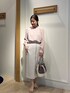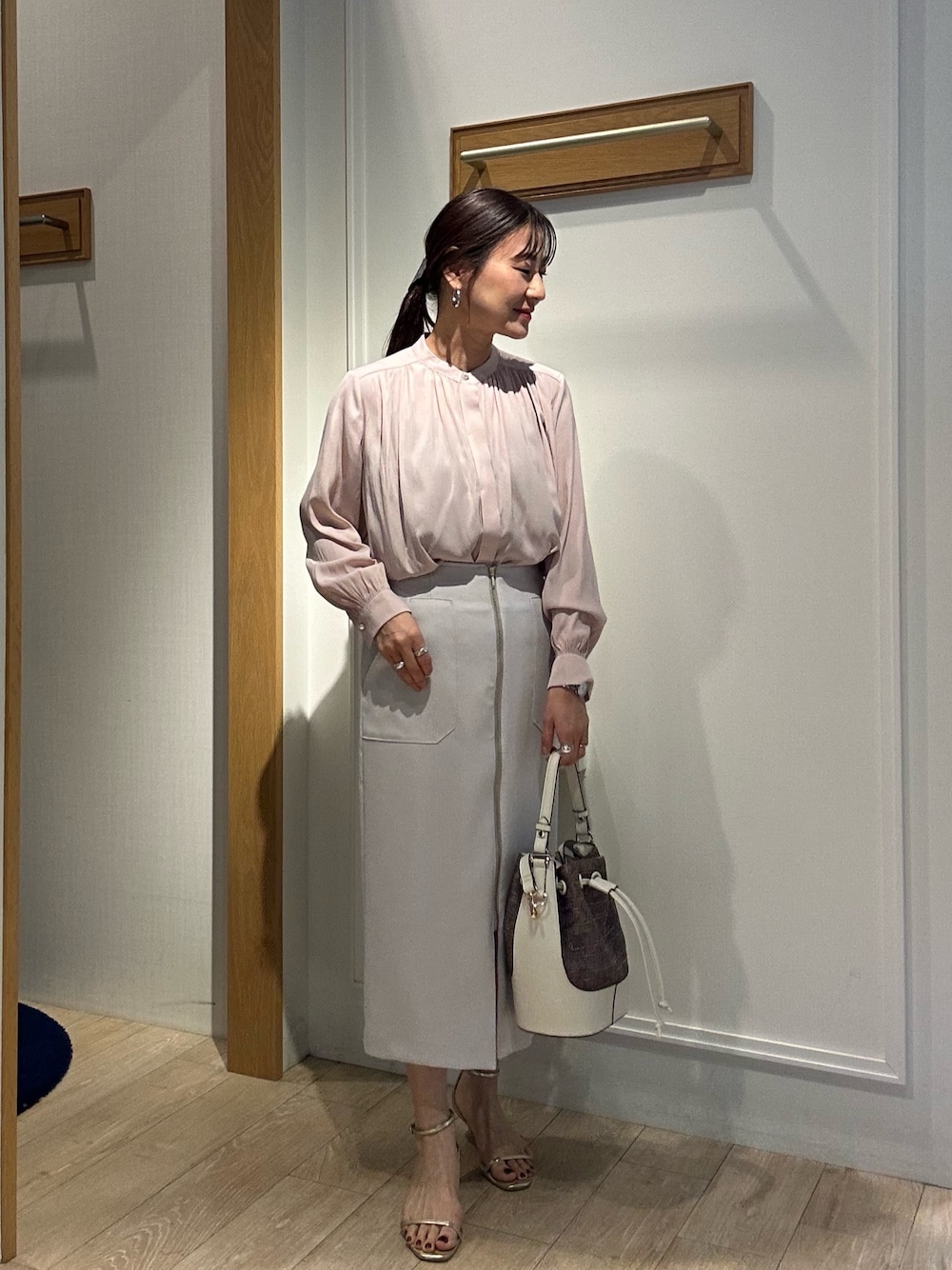 《オケージョン対応》パウダーサテンブラウス 光沢感がありきちんと感のあるブラウスです✨ 一番上のボタンがアクセントになり 他のボタンは比翼仕立てで隠れているため スッキリ着て頂けます 薄手な素材なので涼しく着て頂けます 肩のギャザーや後ろのギャザーが動きを出してくれるので 一枚で華やかな印象に✨ DRYホップサック フロントファスナースカート スッキリ細見えのタイトスカート✨ ポリエステル素材ですが、ドライタッチで柔らかく 軽やかに履いて頂けます ゴールドの前ファスナーがポイント♪ スリット入りなので歩きやすいです ふくらはぎまで隠れる長さです ベーシックに履けるスカートなので オン、オフ両方にご着用頂けます😊