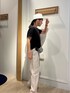 大人カジュアルコーデ✨ 袖口ダブル麻調カットT カジュアルに着る無地の半袖Tシャツといえばこちら! 毎年人気の麻調シリーズ✨ 綿とポリエステル素材でサラッとした肌触りで とても涼しく着て頂けます🎐 首周りは安心感があります 袖口がダブル仕様になっているのでワンポイントになってくれます 着丈は腰回りをカバーしてくれる長さです 程よくゆったり着て頂けるので風通しよく快適に着て頂けます♪ 低身長なのでインスタイルでスッキリ着ていただくことも👍 大人カジュアルコーデにピッタリなTシャツですよ! 《接触冷感》テンセルナイロンパンツ カーゴパンツなので履くだけで 大人カジュアルスタイルに✨ テンセルナイロン素材は軽やかで程よい光沢があります ベージュは裏地があるので透けにくいです カーゴパンツですがラインはスッキリしております 裾の後ろ側にゴムが入ってますので絞ったシルエットに✨ シアーリネンライクシャツ シアー素材は今年もトレンドです! シルバーボールボタンがアクセントに♪ バンドカラーなので首周りはすっきりしています 肩はドロップショルダーなので華奢に見せてくれます 着丈は長く、ヒップが隠れます バックスタイルはスリット入りでリボンがポイントに⭐︎ ボタンを全部開けて羽織感覚で着ると素敵ですよ! Instagramでノーリーズアウトレットのおすすめコーデアップしてます✨ @daimon_nolで検索🔍 フォローしてもらえたら嬉しいです☺️