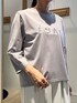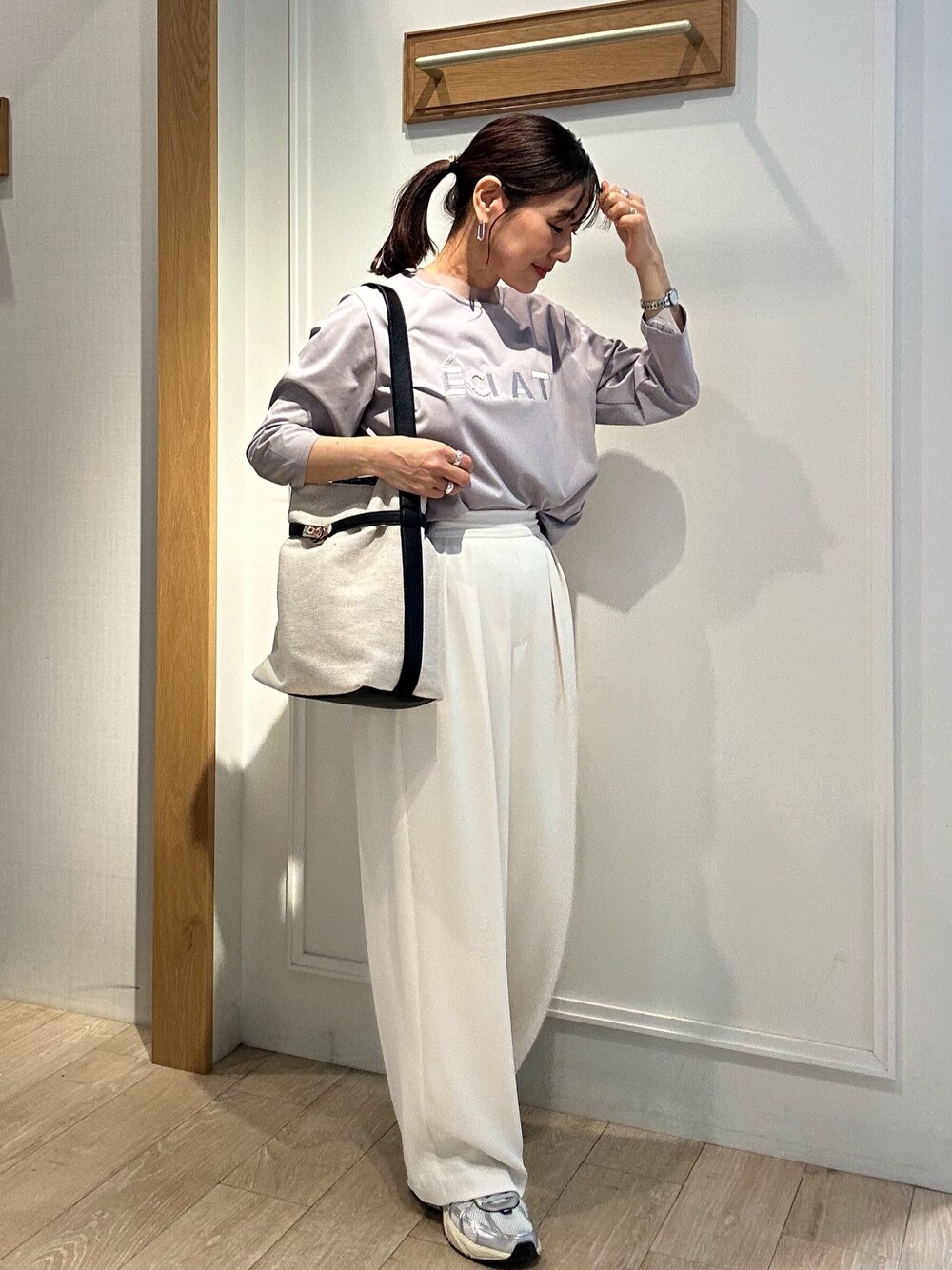 チュール+パールロゴTシャツ 首周りにチュールが施されたデザイン性のあるカットソー✨ ロゴには刺繍やパール、ラインストーンがあり華やかです 同系色のロゴなので控えめで大人っぽく着て頂けます 七分袖は春夏活躍します! 裾は後ろに向けて長くなる仕様なので 外に出して着て頂くこともできますよ♪ タックワイドパンツ テロンとした滑らか肌触りのワイドパンツ✨ ツータック入りなのでワイドなシルエットです ウエストは後ろゴムなので楽に履いて頂けます! ワイドなのでヒップ周り、太もも周り気にせず 履いて頂けます オフホワイトは裏地ありなので透け感気になりません シワになりにくい素材です デイリーからキレイ目まで幅広く履いて頂けるパンツです✨ Instagramでノーリーズアウトレットの おすすめコーデアップしてます✨ @daimon_nolで検索🔍 フォローしてもらえたら嬉しいです☺️