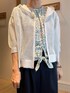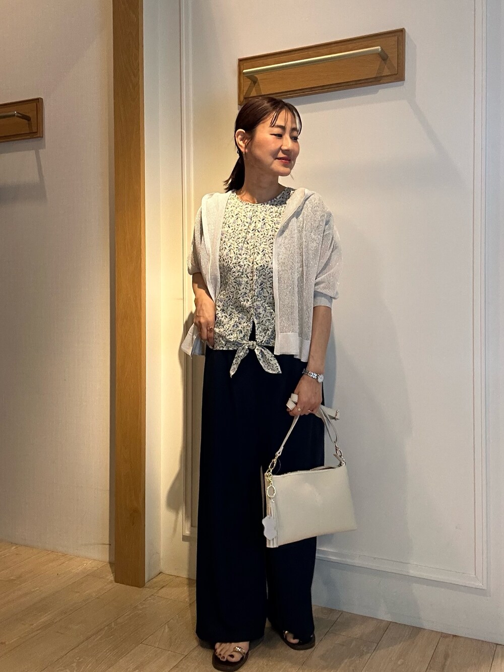 フードメッシュはおり トレンドのメッシュ✨ 羽織るだけで一気に華やかに! ラメ入りなのでキラキラ感があります フードなのでカジュアルな印象に ボタン等ないのでスッキリ羽織れます お袖はひじが隠れる長さで袖口リブ編みなので お袖を上げやすいです♪ コットンローンプリントフロントリボンブラウス 綿ローン素材の涼しいブラウス✨ お袖はフレンチスリーブでフリルが二の腕をカバーしてくれます! 裾にリボンがアクセントになってくれます インせず着ていただける丈感です♪ ボタニカル柄が爽やかに涼しくカジュアルに 着こなして頂けますよ! エステルカノコパンツ サラッとした肌触りの涼しいセミワイドパンツ ウエストゴムなので楽に履いて頂けます ストレッチ性があるのでとても楽です! ネイビーカラーはきちんとスタイルからカジュアルスタイルまで 幅広く着回ししていただけますよ! レザー2WAYショルダーバッグ 牛革のショルダーバッグは マチが薄くコンパクトなサイズ感です 横長なので長財布の大きめなお財布も 入れていただけます コンパクトに見えて収納力は抜群です! 肩がけと斜めがけの2種類のお紐を付け替えて お持ちいただけます 普段使いはもちろん、セレモニーなどの きちんとした場でご利用頂けますよ! Instagramでノーリーズアウトレットの おすすめコーデアップしてます✨ @daimon_nolで検索🔍 フォローしてもらえたら嬉しいです☺️