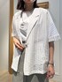 シルク調テーラーハーフスリーブジャケット シルクのように程よい光沢のあるジャケット ストライプがオシャレ!! 柄物のジャケットと思うとハードルが高いですが ストライプシャツ感覚で羽織って頂くと 着回ししやすいですよ♪ シアー感があるので夏活躍してくれます😊 チュール使いTシャツ 毎年人気のTシャツ♪ 綿とポリエステル素材のサラッとした肌触りで なめらかさがあり光沢感もあるので カジュアルからキレイめまで幅広く着こなして頂けます! ロゴの刺繍とパールがアクセントに✨ 麻調×リブ切替タイトスカート 毎年人気のタイトスカート! サイドにリブ編み生地を使用しているので ストレッチ性があります ウエストはゴム仕様なのでとても楽です きちんと感からカジュアルまで幅広く着こなしていただけます 154センチで足首が見える長さの丈感です✨ 裏地がついているので安心して履いて頂けますよ! Instagramでノーリーズアウトレットの おすすめコーデアップしてます✨ @daimon_nolで検索🔍 フォローしてもらえたら嬉しいです☺️