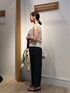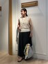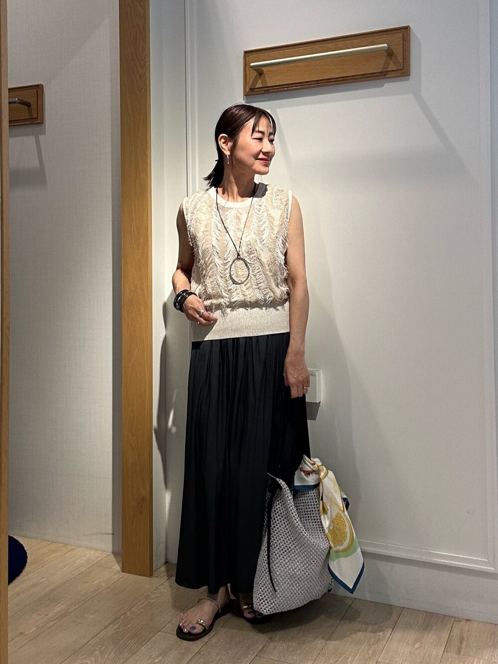 夏のカジュアルコーデ✨ 強撚シャギーグラデーションベスト 今年トレンドのシャギーフリンジ✨ 着るだけで一気に今年らしいスタイリングに♪ シアー感があるので、インナーにはサテンタンクトップを合わせました😊 白いインナーだと明るい印象に✨ ウエストのリブ部分にはラメ入りなのがポイント👍 割繊ツイルギャザースカンツ スカート見えするパンツ✨ ウエストゴムなのでとっても楽です! ギャザー入りなのでヒップ周りをカバー 154センチで足首位の着丈です 裏地なしで透け感はないので涼しくはいていただけます! 程よい光沢感がより大人っぽい印象に♪ Instagramでノーリーズアウトレットの おすすめコーデアップしてます✨ @daimon_nolで検索🔍 フォローしてもらえたら嬉しいです☺️