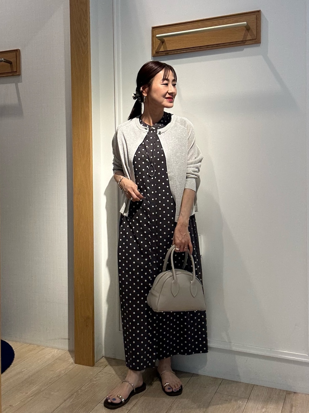 ドットワンピース×ラメカーディガン✨ 麻調合繊タック切替シャツワンピース 去年も大人気だったワンピース✨ ボタンが一番上だけ見える仕様で あとは比翼仕立てなのでスッキリしています ワンサイズですがウエスト横のベルトで 調節していただけるので小柄な方にも着ていただきやすいですよ! 着丈は足首が見える長さですので軽やかな印象に💓 ノースリーブなのでカーディガンを合わせて デイリーに✨ ラメノースリーブ+カーディガン ラメ入りなのでシンプルな形ですが華やかさがあります カーディガンはシアー感があるので涼しく羽織っていただけます 一つボタンなのでシンプルな着こなしに✨ 程よいドルマンスリーブが肌へのあたりが少なく二の腕もカバーしてくれます☺️ インナーのノースリーブは透け感がないので安心感があります Instagramでノーリーズアウトレットの おすすめコーデアップしてます✨ @daimon_nolで検索🔍 フォローしてもらえたら嬉しいです☺️