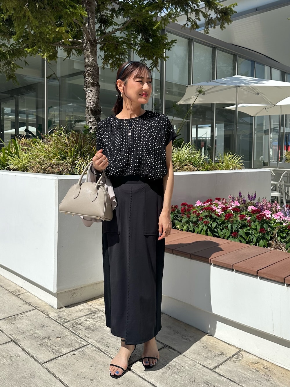 夏のきちんとスタイル✨ シアーマンスドットプリーツブラウス 薄手のプリーツブラウスは透け感気にせず着て頂ける デザイン性のあるブラウスです! 首周り、袖口、裾にはリブ編みが引き締めてくれます 細いプリーツ加工が肌にあたるのを防いでくれ とても涼しいです🎐 お袖は二の腕をカバーしてくれる嬉しい長さです ジャケットのインナーにもしていただきやすいです✨ ジャージーピンタックナロースカート Iラインをきれいに見せてくれるスカート✨ ウエストゴムですが前側はスッキリ見えします サイドのリブ編みが細見え効果に♪ ヒップ周りの締めつけ感はなく履いていただけますよ! 154センチで足首が見える着丈ですので 長すぎず歩きやすいです😊 ポリワッシャーカルゼテーラードジャケット 軽くてシアー感のあるジャケット✨ シャツ羽織りのようにとても軽く涼しく羽織っていただけます! テーラードの形がきちんと見えに✨ 袖口にギャザーがあるので動きのある印象にしてくれます♪ Instagramでノーリーズアウトレットの おすすめコーデアップしてます✨ @daimon_nolで検索🔍 フォローしてもらえたら嬉しいです☺️