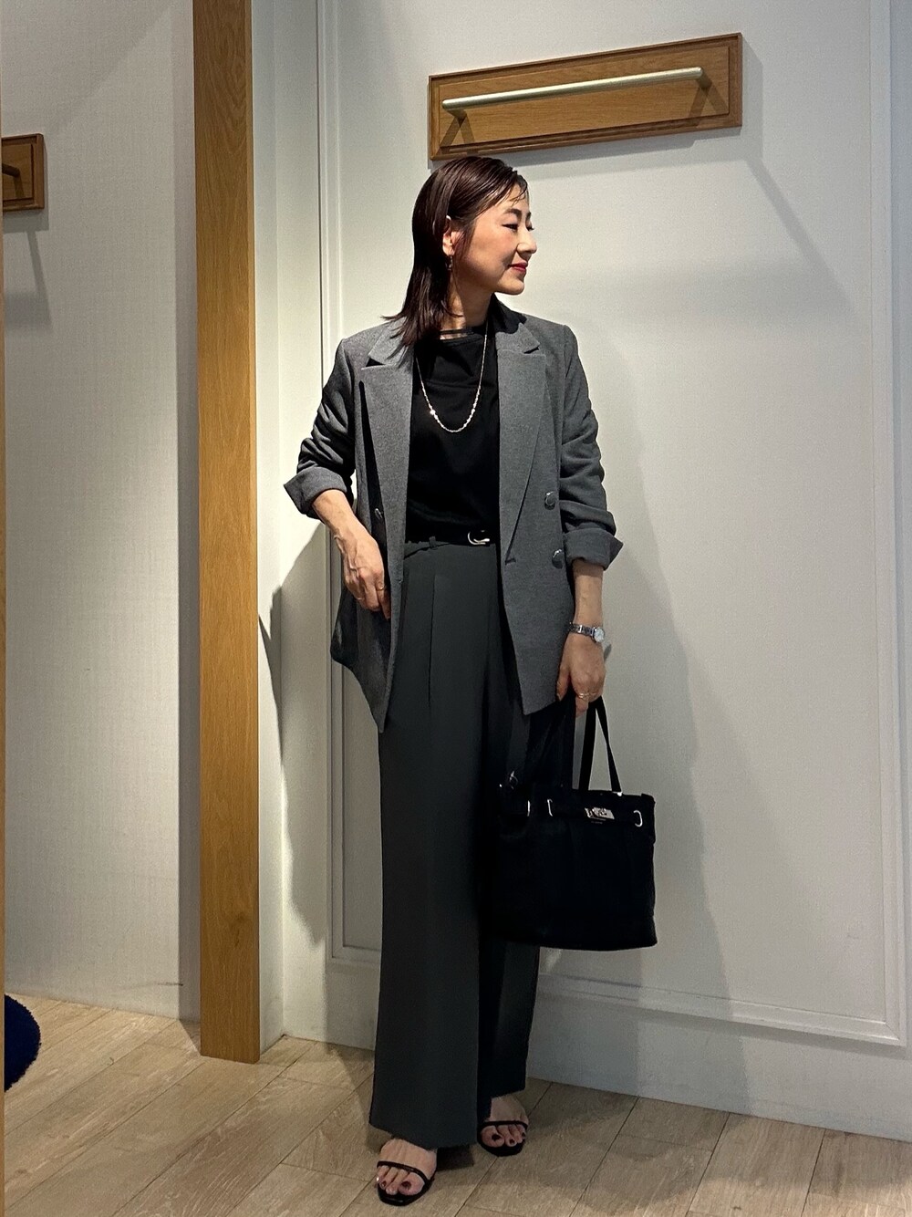 秋のジャケット通勤スタイル✨ 《セットアップ対応》 ハイストレッチジョーゼットジャケット ダブルのテーラードジャケットは羽織るだけで 一気にかっこよく決まります✨ ストレッチ性抜群なので着心地が良いです お袖はスリット入りなので折り返して着ていただけます くるみボタンがジャケット生地と同じ生地なので統一感があります ワンサイズ展開ですが小柄な方にも羽織りやすいサイズ感です リブ部分シアー カットソー7分袖 半袖でも大人気だったカットソーが 7分袖バージョンで入荷しました! 本体はコットン100%でなめらかな肌触りと 程よい光沢感が上品な着こなしにぴったりです! 首周り袖口にはリブとシアー感がアクセントになってくれます 一枚着の他にジャケットのインナにもしやすいですよ! 《セットアップ対応》 ハイストレッチカルゼワッシャーベルト付きパンツ 足のラインを綺麗に見せてくれるパンツ✨ 付属の細ベルトがアクセントに✨ ウエストゴム仕様なので楽に履いて頂けます センタープレス入りなので縦のラインを強調してくれます セミワイドのシルエットが足の形をカバーしてくれ 綺麗に見せてくれます! ストレッチ性がありますのでとても楽です! シワになりにくい素材です Instagramでノーリーズアウトレットの おすすめコーデアップしてます✨ @daimon_nolで検索🔍 フォローしてもらえたら嬉しいです☺️