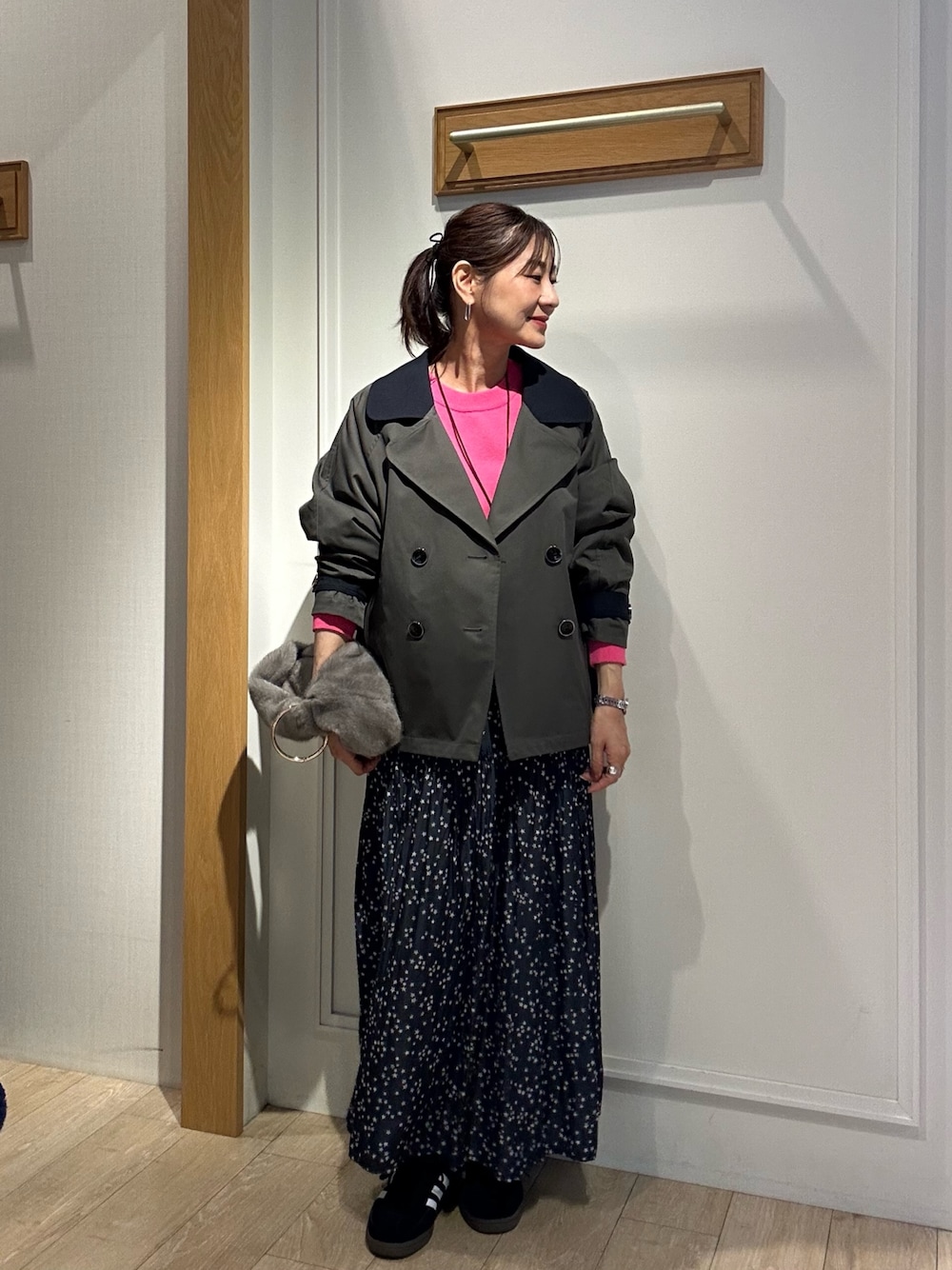 daimon(ノーリーズアウトレット THE OUTLETS HIROSHIMA店)のトレンチコート「バイカラーショートトレンチコート」を使ったコーディネート