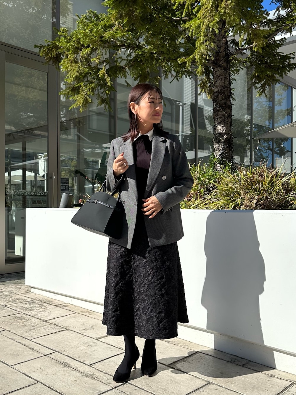 ツィードシャークテーラードダブルジャケット 去年リアルバイしたツイードジャケット✨ 今年も展開しております! サイズ展開が36.38なので華奢な方にも ピッタリ合うサイズで羽織って頂けます! 細かなツイード感が派手すぎず クラシカルに羽織って頂けます きちんと感があるので七五三さんなどのイベント事に活躍してくれます! バイカラーリブ衿付きプルオーバーニット 襟がアクセントになってくれるニット✨ リブ編みなのでスッキリと着ていただけます 襟と袖口の色が配色になっているので メリハリのある着こなしに✨ クラシカルな印象にしてくれる素敵なニットです! コンパクトなサイズ感なので華奢な方にも着て頂きやすいです😊 フラワージャガードフレアースカート 艶やかな中にフラワージャガードが華やかなスカート✨ ウエスト後ろ側にゴムがありますので楽に履いて頂けます Aラインフレアが女性らしくクラシカルな印象に✨ 154センチの身長で足首が見える丈感です! 長すぎず短すぎずのとても使いやすい長さですよ😊 クラシカルな印象にしてくれます 七五三やイベント等にも着映えするスカートです! 軽量ベルテッド2WAYトートバッグ とても軽くクラシカルな印象に持っていただける高見えバッグ✨ 肩がけできるお紐も付属でついております きちんと感はもちろんですが、 普段使いのカジュアルな着こなしにも 持って頂きやすいバッグです😊 Instagramでノーリーズアウトレットの おすすめコーデアップしてます✨ @daimon_nolで検索🔍 フォローしてもらえたら嬉しいです☺️
