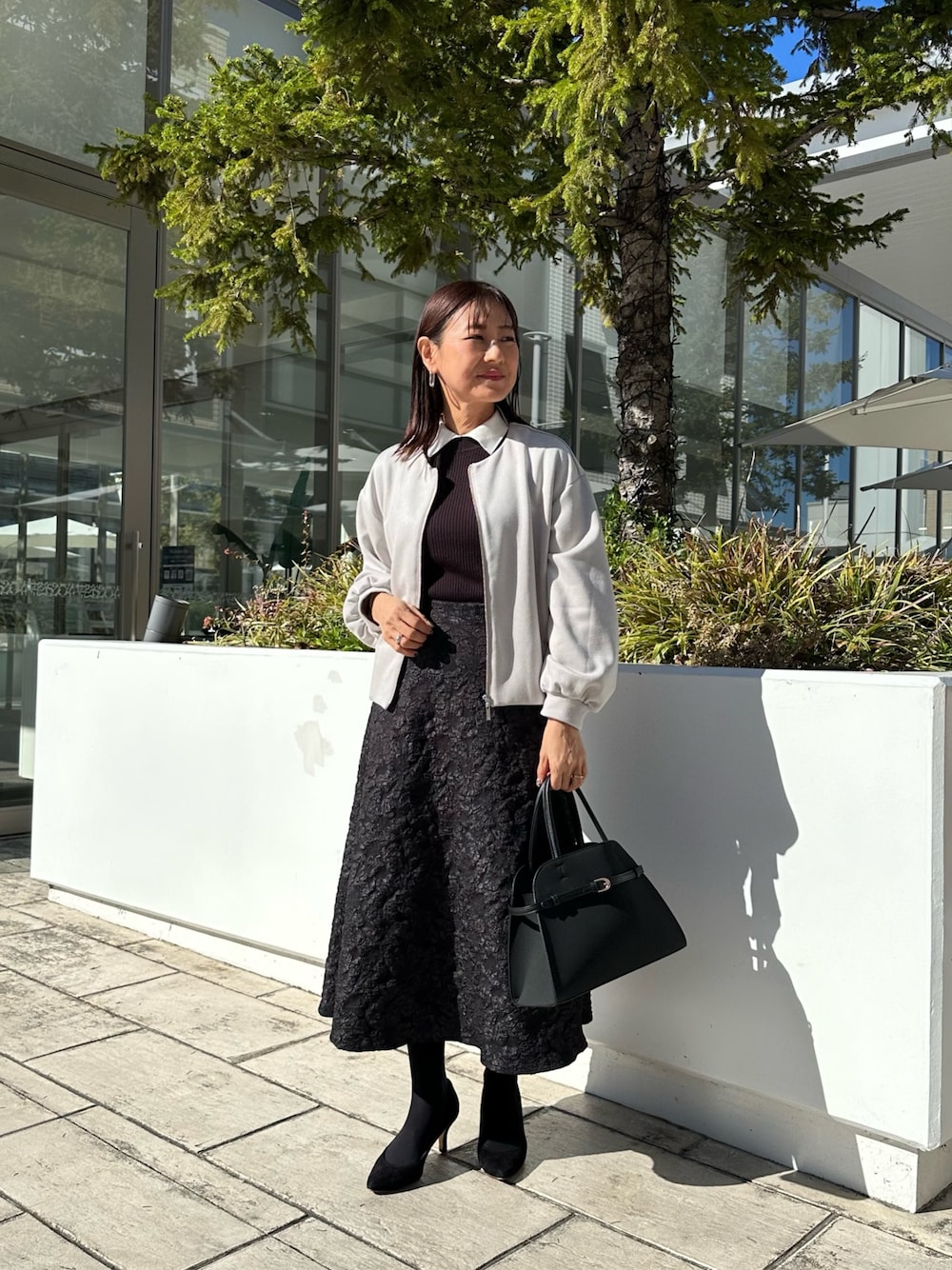 マシュマロスエードブルゾン スエードのような風合いの良いブルゾン✨ とても柔らかくストレッチ性があります ドロップショルダーなのでゆったり着ていただけ 中に着込めるサイズ感です きちんとした着こなしからカジュアルスタイルまで幅広い着こなしに✨ バイカラーリブ衿付きプルオーバーニット 襟がアクセントになってくれるニット✨ リブ編みなのでスッキリと着ていただけます 襟と袖口の色が配色になっているので メリハリのある着こなしに✨ クラシカルな印象にしてくれる素敵なニットです! コンパクトなサイズ感なので華奢な方にも着て頂きやすいです😊 フラワージャガードフレアースカート 艶やかな中にフラワージャガードが華やかなスカート✨ ウエスト後ろ側にゴムがありますので楽に履いて頂けます Aラインフレアが女性らしくクラシカルな印象に✨ 154センチの身長で足首が見える丈感です! 長すぎず短すぎずのとても使いやすい長さですよ😊 クラシカルな印象にしてくれます 七五三やイベント等にも着映えするスカートです! 軽量ベルテッド2WAYトートバッグ とても軽くクラシカルな印象に持っていただける高見えバッグ✨ 肩がけできるお紐も付属でついております きちんと感はもちろんですが、 普段使いのカジュアルな着こなしにも 持って頂きやすいバッグです😊 Instagramでノーリーズアウトレットの おすすめコーデアップしてます✨ @daimon_nolで検索🔍 フォローしてもらえたら嬉しいです☺️