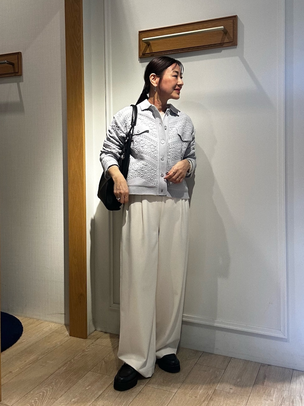 クロシェレース風衿付きカーディガン レース編みが可愛い襟付きカーディガン✨ ニット素材ですが、胸ポケットやボタンの感じがGジャンの雰囲気に似たシルエットです♪ ニットの柔らかさがあるので着心地がとても良いですよ! 程よい肉厚感がコートの中にも着て頂けたり 春先にはアウター代わりになってくれそうです✨ ラメテレコ×チュールロンT 毎年人気のTシャツ✨ 首周りと袖口にチュールがあるので華やかな印象に✨ 程よいラメが他のTシャツとは違ってきちんと感を表現してくれます ウォッシャブルイージーワイドパンツ セカンドノーリーズのイージーワイドパンツ つるんとした素材感のパンツは ワイドなシルエットでウエストゴムなのでとても楽に履いて頂けますよ♪ キレイ目にもカジュアルにも履きこなせる万能なパンツです! Instagramでノーリーズアウトレットの おすすめコーデアップしてます✨ @daimon_nolで検索🔍 フォローしてもらえたら嬉しいです☺️