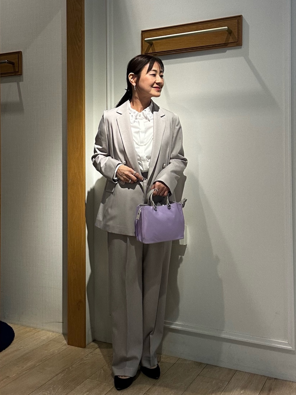 春のセットアップ✨ お仕事や、入園入学にも活躍のセットアップ💓 《セットアップ対応》 ライトモククロスジャケット ポリエステル素材のシワになりにくい生地です ダブルのジャケットなのでゆったり羽織って頂けます お袖は折り返しのできるスリット入り ボタンの位置が高めなのでスタイリッシュに着て頂けます! 裏地なしなので春、夏、秋の3シーズンは着ていただける万能ジャケットです♪ お仕事以外にTシャツ×デニムパンツのデイリー仕様もいけますよ😊 《セットアップ対応》 ライトモククロスパンツ ワンタック入りのセミワイドパンツ✨ 程よくゆったり履いていただけるパンツです ウエスト両サイドにはゴムが入っているので楽に履けます! センタープレス入りなので縦長シルエットになり足長効果に✨ お仕事ではスタイリッシュに履いて頂け、 デイリーではどんなトップスでも着回しが効くパンツですよ! ポリブロード取り外し衿2WAYシャツ レース襟がポイントのブラウス✨ ポリエステル素材なのでシワになりにくいです 第一ボタンはパールボタンでアクセントになり 比翼仕立てなのでスッキリシルエットです! ジャケットのインナーとしてだけでなく 普段使用もレース襟が可愛いですよ! Instagramでノーリーズアウトレットの おすすめコーデアップしてます✨ @daimon_nolで検索🔍 フォローしてもらえたら嬉しいです☺️