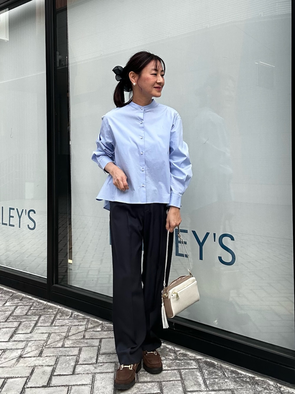 パール釦ペプラムブラウス オンオフ使えるブラウス✨ 小さめなパールボタンがアクセントになってくれます! バンドカラーが首元をスッキリみせてくれます♪ 前身頃の裾が短くコンパクトな長さです 後ろに向かって裾が長くなりヒップが隠れる嬉しい長さです! バックスタイルがペプラムギャザーなので デザイン性がありおしゃれに着ていただけます💓 《セットアップ対応》 ライトモククロスパンツ ワンタック入りのセミワイドパンツ✨ 程よくゆったり履いていただけるパンツです ウエスト両サイドにはゴムが入っているので楽に履けます! センタープレス入りなので縦長シルエットになり足長効果に✨ デイリースタイルからきちんとスタイルまで幅広く使えるパンツですよ! バイカラーショートトレンチコート 普通のショートトレンチでは物足りない方に 配色がおしゃれなコート✨ ベージュ×ブラウン配色が軽やかに春らしく着ていただけます♪ ショート丈なので低身長の方にもオススメ✨ 大きめな襟が小顔効果に☺️ 裏地なしでゆったりシルエットなので中に着込むこともでき 早い時期からご利用いただけますよ! Instagramでノーリーズアウトレットの おすすめコーデアップしてます✨ @daimon_nolで検索🔍 フォローしてもらえたら嬉しいです☺️