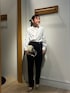 ジレコーデ✨ ランダムラメツィードジレ セレモニーからオフィス、デイリーまで幅広く使えるジレ✨ 昨年も人気だったジレが今年も登場です! ツイードの中にほんのりラメ糸が入っており 華やかさのあるジレです ゴールドボタンがアクセントに✨ 第一ボタンだけ留めることでパンツのラインを見せて足長効果に☺️ ペプラムシルエットなのでパンツスタイルですっきりと✨ スカートならタイトスカートが👍 ヒップが隠れる長さが低身長の方にもコンパクトに着ていただけるのでおすすめです! ポリブロード取り外し衿2WAYシャツ レース襟がポイントのブラウス✨ ポリエステル素材なのでシワになりにくいです 第一ボタンはパールボタンでアクセントになり 比翼仕立てなのでスッキリシルエットです! レース襟がポイントなので、 ジレやカーディガンから襟を覗かせる着こなしが可愛いですよ🩷 《セットアップ対応》 サンディカットジョーゼットパンツ ウエストゴムなのでとても楽に履いていただけます ワンタック入りなのでお腹周り気にせず履いていただけます 裾に向かって細くなったシルエットなので 低身長でもスッキリ履いていただけますよ! Instagramでノーリーズアウトレットの おすすめコーデアップしてます✨ @daimon_nolで検索🔍 フォローしてもらえたら嬉しいです☺️