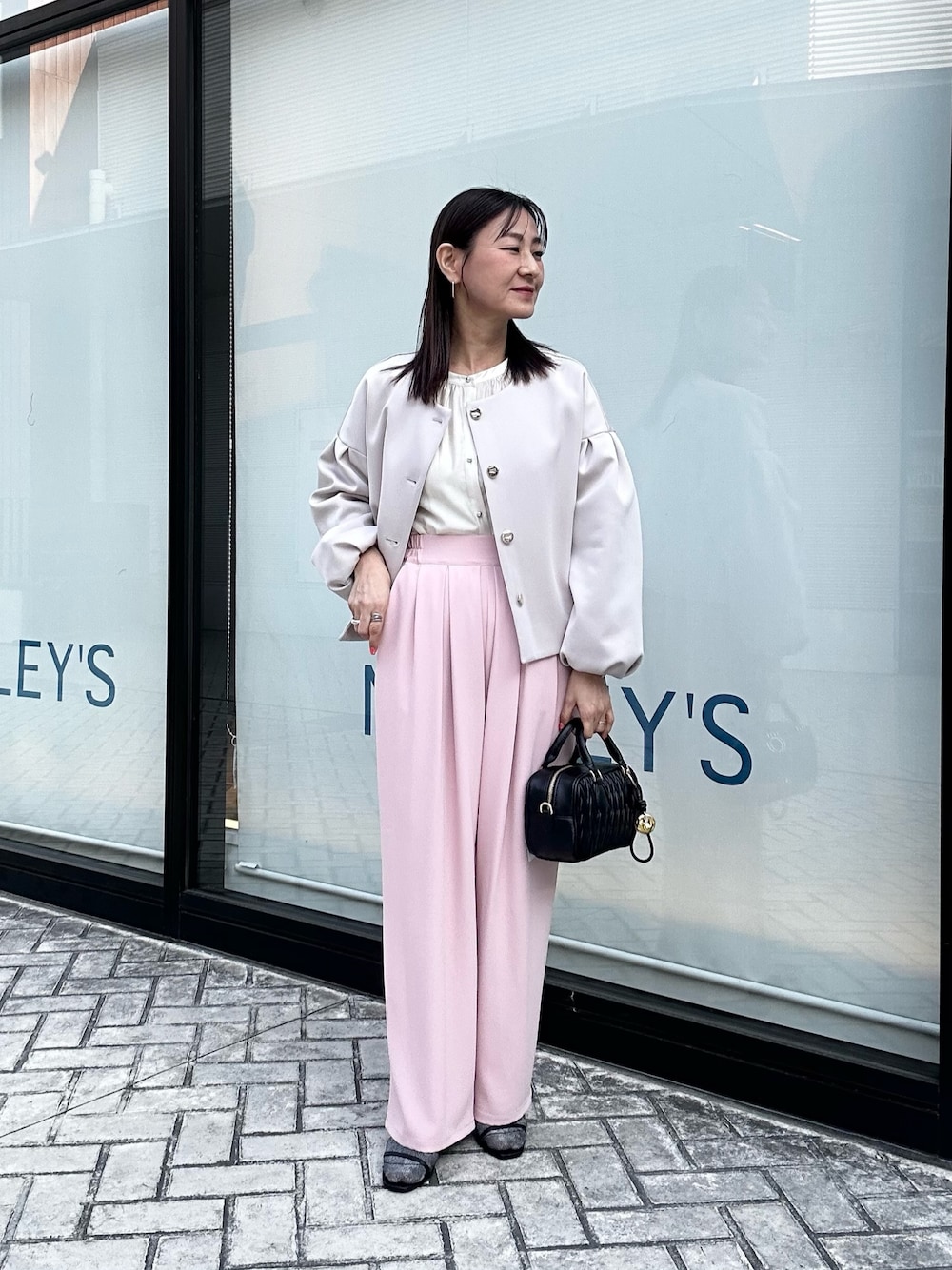 綿タッチダンボールニットブルゾン 羽織るだけできちんと感が完成されるノーカラーブルゾン✨ カットソー生地ですが、光沢感があり上品に着て頂けます ゴールドボタンが華やかに✨ ドロップショルダーなのでゆったりと羽織って頂けます 着丈がコンパクトなので低身長さんにもちょうどよく羽織って頂けます♪ セレモニーからデイリーまで幅広いシーンで羽織って頂けますのでとても便利な一枚! シルキーローン袖ギャザーブラウス シルキーローン素材は春らしいシアー感のあるブラウスです✨ 丸いメタルボタンがアクセサリーいらずでポイントになってくれます お袖のギャザーが立体感をだしてくれ華やかに♪ コンパクトな7分袖です オフィスからデイリー、セレモニーまで対応可能ですよ! タックギャザーパンツ しっかりタックの入ったギャザーパンツは ワイドシルエットで履いて頂けます ウエスト前はスッキリ、後ろはゴム入りなのでとても楽に履いていただけます ポリエステル素材なのでシワを気にせず履いて頂けます! 優しいピンクカラーなので春らしいですね🌸 ホワイト系やベージュなどの淡い色を合わせていただくと爽やかな着こなしに✨ Instagramでノーリーズアウトレットの おすすめコーデアップしてます✨ @daimon_nolで検索🔍 フォローしてもらえたら嬉しいです☺️