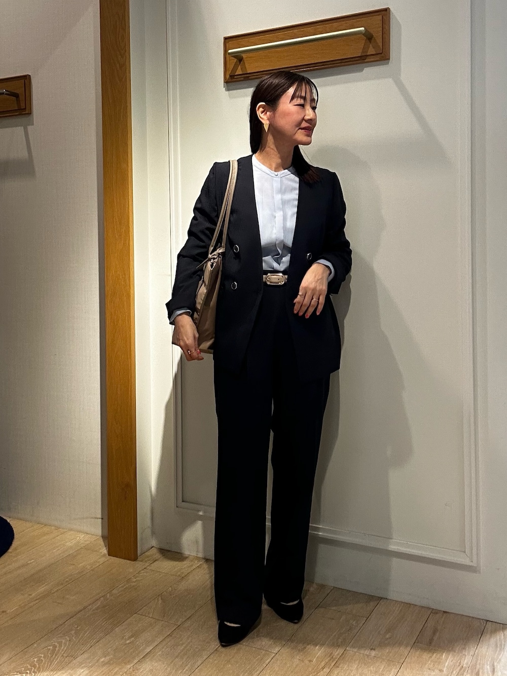 通勤やセレモニーにも活躍✨ 《セットアップ対応》 シアーチェックジャケット チェック柄のセットアップが入荷しました✨ 裏地なしなので春夏秋まで長い期間ご利用頂けます ポリエステル素材でシワになりにくいです 無地に近いチェック柄なのでさりげなくオシャレを楽しんでいただけますよ♪ ノーカラーなので胸元はスッキリシルエット 着丈はヒップが隠れる嬉しい長さ 38サイズを着用、無理なく羽織れるサイズ感です! セレモニーで着て頂くのもオシャレな着こなしになります🌸 《セットアップ対応》 シアーチェックパンツ サラッとした肌触りのパンツ✨ センタープレス入りの太めなストレートラインですので 無理なくスッキリと履いていただけます 38サイズを着用、ウエストにゆとりがありますので ベルトを締めて履いています ポリエステル素材なのでシワを気にせず履いていただけます! TRピケタックブラウス ジャケットのインナーに着ていただきやすいブラウス✨ カットソー並みに肌触りが柔らかく着心地が良いです ポリエステルとレーヨン素材のしなやかさが きちんと感を表現してくれます 第一ボタンだけ見える仕様の比翼仕立てです ウエストのタック入りが立体的に見せてくれます Instagramでノーリーズアウトレットの おすすめコーデアップしてます✨ @daimon_nolで検索🔍 フォローしてもらえたら嬉しいです☺️