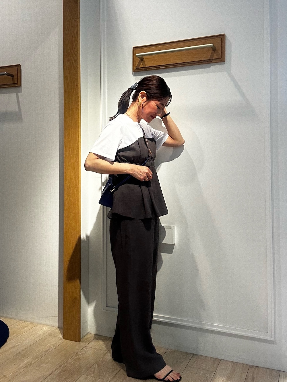 《接触冷感》 サスティナクールブッチャーセットアップ セットアップが嬉しいカジュアルコーデ✨ ブッチャー素材は肌触りがドライタッチで爽やかに着て頂けます✨ ビスチェ風のドッキングデザインがオシャレに🎶 胸下のゴムが柔らかくバックスタイルにも シャーリングゴムがあることでスッキリシルエットに✨ ボトムスのパンツはウエストゴム仕様の楽なセミワイドパンツ 太すぎないセミワイドが低身長でもバランスよく着て頂けます! 撥水ノーカラーブルゾン コンパクトに羽織れるノーカラーブルゾン✨ ドライタッチな肌触りでさっぱりと羽織って頂けます 肩はドロップショルダーですので肩周りは動かしやすく、 袖口のゴムがお袖を上げる時に留まってくれます 裾のギャザーはゴム入りなので自然な丸みに仕上げてくれます♪ 小柄の方には特にこちらの羽織はコンパクトに 羽織っていただけるのでオススメです😊 撥水加工されているのでこの先の梅雨時期も活躍しそうです! サックスブルーは爽やかな印象にしてくれます✨