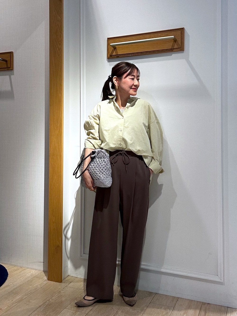 綿和紙ボイルシャツ 爽やかな素材で軽やかに羽織れるシャツ✨ ドライタッチな肌触りで涼しく羽織っていただけます 前ボタンを留めて着ていただいたり、インスタイルにしてみたり 羽織のようにボタンを全部開けて着て頂ける万能シャツです♪ バックスタイルはボタンの開け具合でスリットを見せて着ていただくとおしゃれですよ! ラメテレコ×チュールタンクトップ インナー使いにアクセントになってくれるタンクトップ✨ 首周り、袖ぐりにチュールがポイント♪ 首周りの開きや袖ぐりはつまっているので 華奢な方でもちょうどよく着ていただけます! ラメ入りが華やかさをプラス😊 ツイルパンツ オンオフ使えるセミワイドパンツ✨ ツルッとした素材感は程よい光沢感とツイルの質感がきちんとした印象プラスデイリーにも使える万能パンツです! ウエストはゴム仕様でドローコード付きなので楽に履いていただけます! 程よいセミワイドのシルエットなのでヒップ周りや太もものラインを拾わず履いていただけます✨ 身長154センチで36サイズ着用、着丈はちょうど良いです😊 小柄の方にもオススメです♪ シワになりにくいのでケアがとても楽ですよ! Instagramでノーリーズアウトレットの おすすめコーデアップしてます✨ @daimon_nolで検索🔍 フォローしてもらえたら嬉しいです☺️