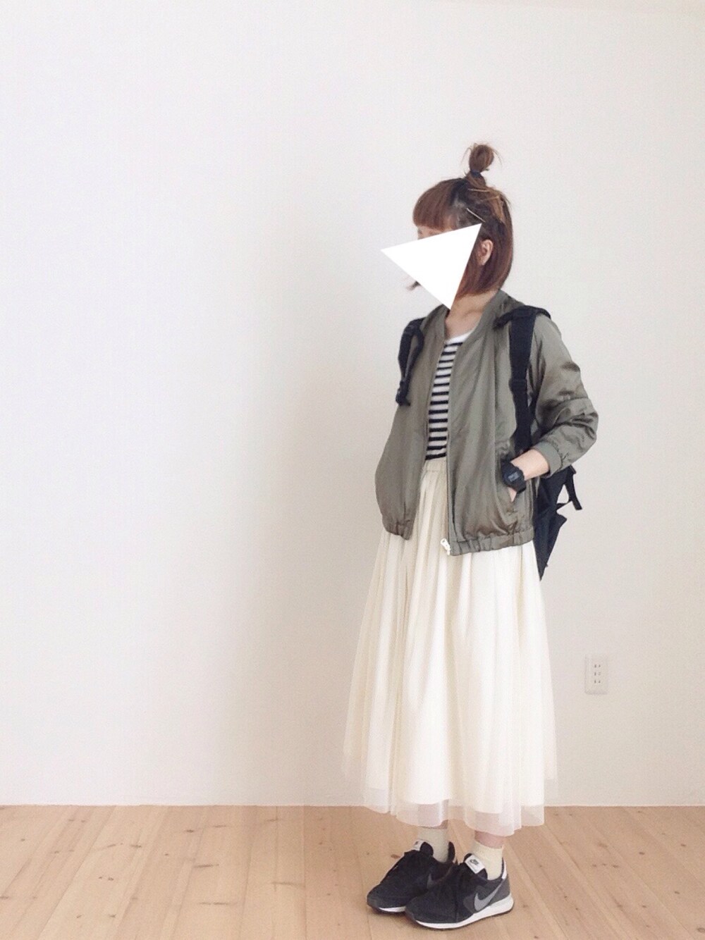 ちょっと 前 の コーデ ○ n i k o a n d . . . の ブルゾン は サテン生地 で 着た かんじ とても 軽いです ☺︎ チュールスカート で 甘 さ ぷ ら す .**⑅