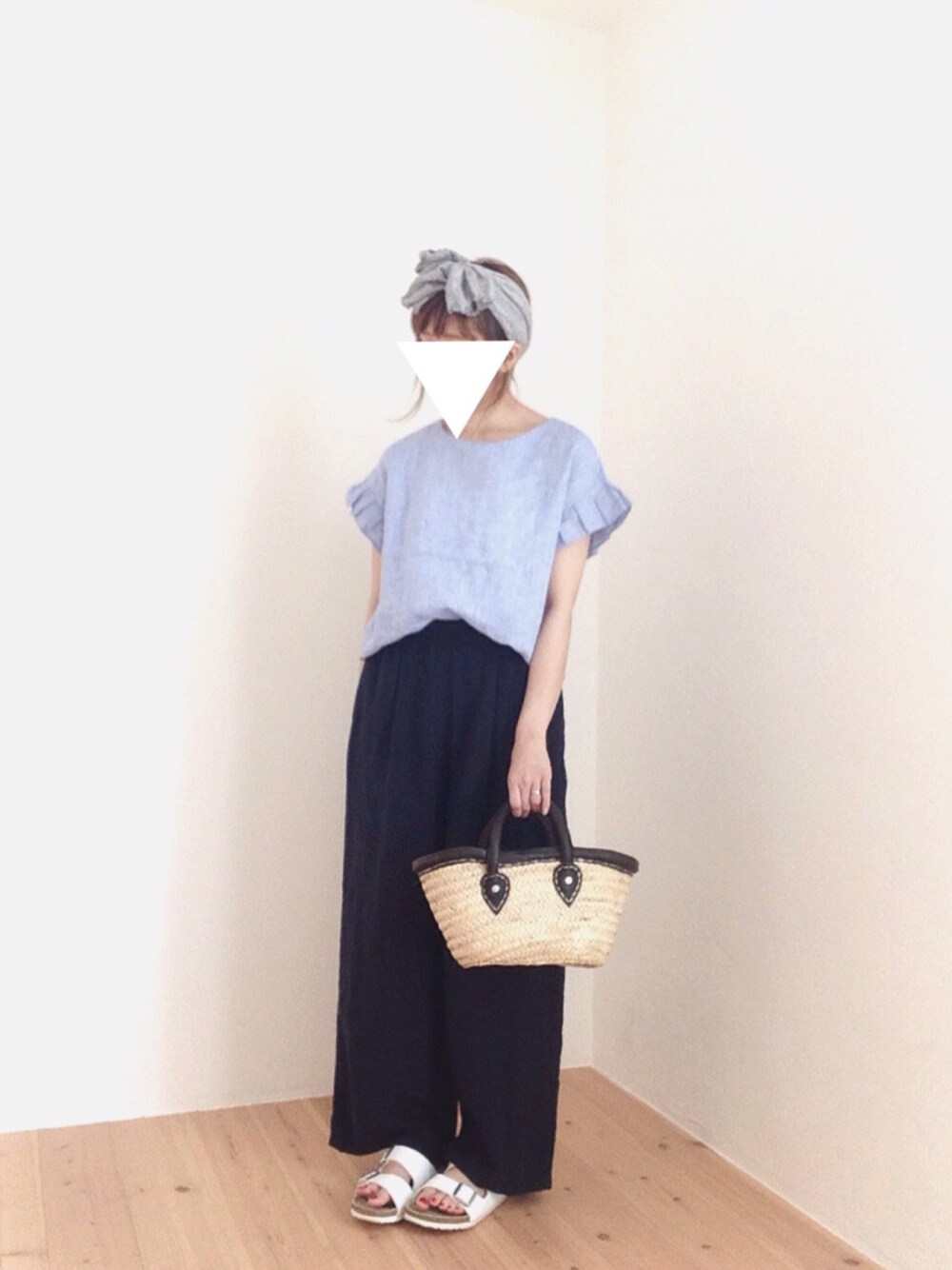 ワ イ ド パ ン ツ の 生 地 が リ ネ ン で 履 き ご こ ち と っ て も い い で す ○