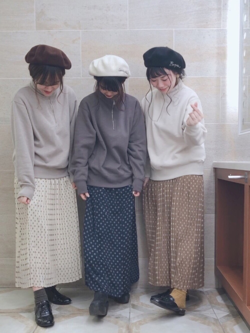 i mariのハンチング/ベレー帽「Le Beret Francais ベレー(刺繍)」を使ったコーディネート