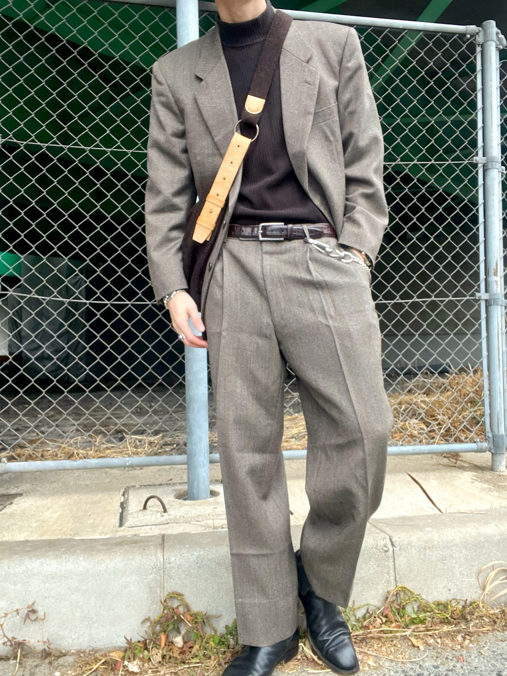 ☕️☕️☕️☕️☕️☕️☕️☕️☕️☕️☕️☕️☕️☕️☕️☕️☕️☕️ おはようございます!☀️ 本日のピックアップタグ『#セットアップ』👔 全体的に、茶系統でまとめてます!🦥 スーツを着ると、カチッとして背筋が伸びますね!🕺🏼 ※ネーム刺繍入りのスーツなので、 恐らくオーダースーツなのかなって思います。 全く面識のない方ですが、巡り巡って自分のとこに やってきた事は、とても感慨深いものがあり それが古着の魅力の一つだと自分は思います。🤔💭 あと、めっちゃ寒くて指先赤くなりました🥶(2枚目) 撮った写真を見返して気付きました笑 -------------------------------------------------------- ⚫︎スーツ 古着(90s 日本製) ⚫︎ニット Hush Puppies (日本製) ⚫︎ベルト Ralph Lauren (イタリア製) ⚫︎バッグ Harris Tweed (ショップ別注) ⚫︎カラビナ Wichard (OLD 旧ロゴ) ⚫︎ブーツ 古着 (イタリア製) ⚫︎アクセサリー NAVAJO -------------------------------------------------------- いつもいいね、お気に入り、フォルダイン、コメント ありがとうございます!!めっちゃ嬉しいです!!😄😄 投稿のモチベ上がります!!🔥✊🏻🔥 Instagram≥daiki_gram_66 是非繋がってください!👼✨