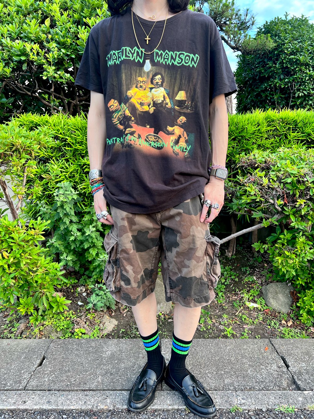 ・Tシャツ/マリリンマンソン ・カーゴパンツ/VINTAGE ・靴下/ファミマ ・ローファー/ハルタ ・ネックレス/Tiffany 肩が張ってるのが気になる🥹