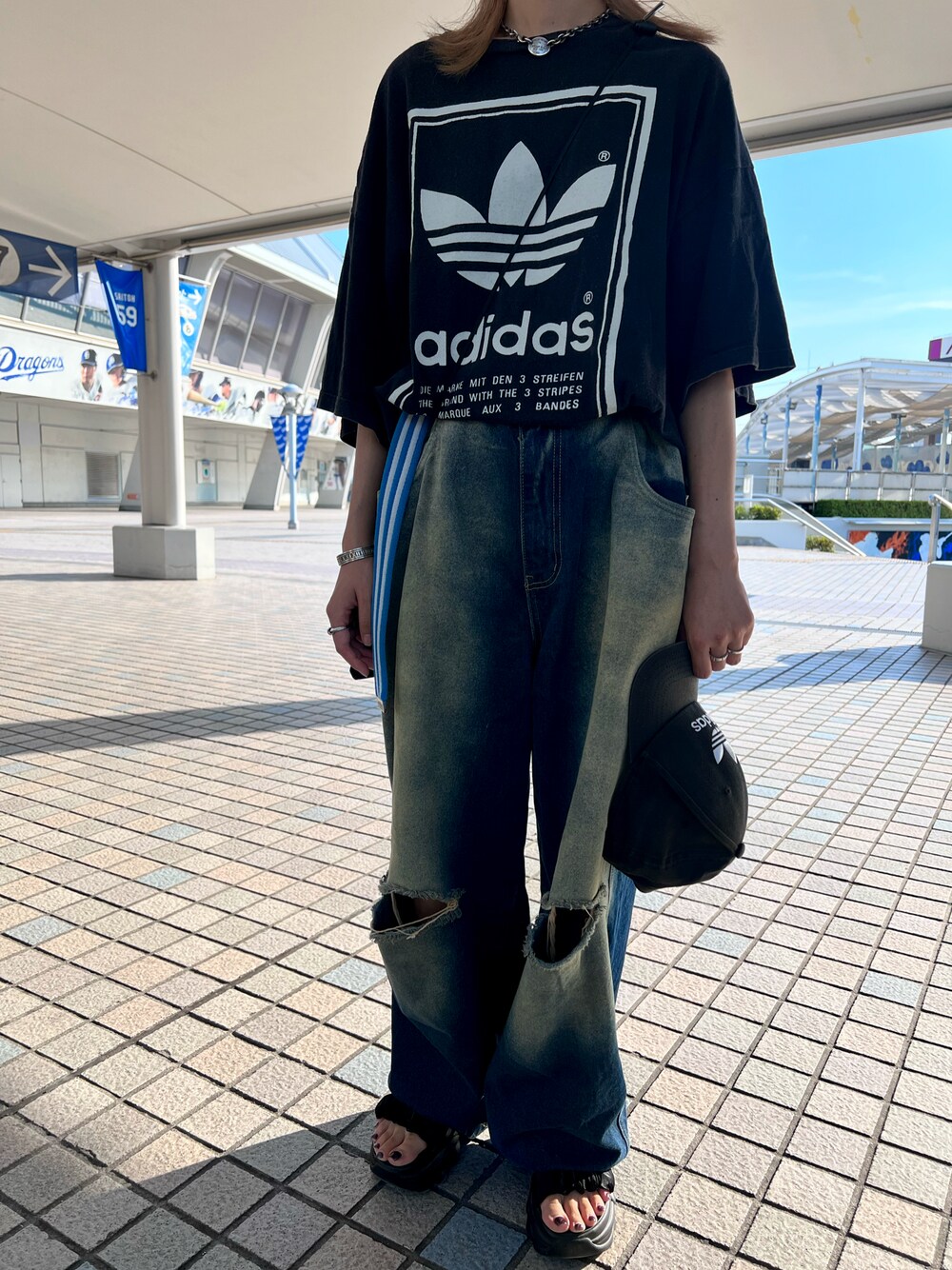 ・キャップ/adidas ・Tシャツ/adidas/90s USA製 ・デニムパンツ/古着 ・ベルト/adidas 00s ・チョーカー/Tiffany 90s