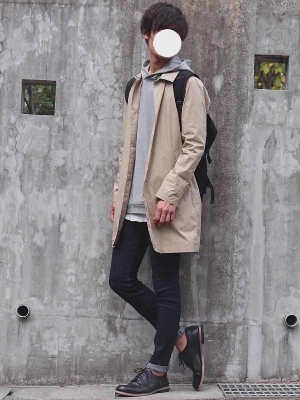 DAISUKE.のステンカラーコート「UR コットンストレッチタイプライターコート」を使ったコーディネート