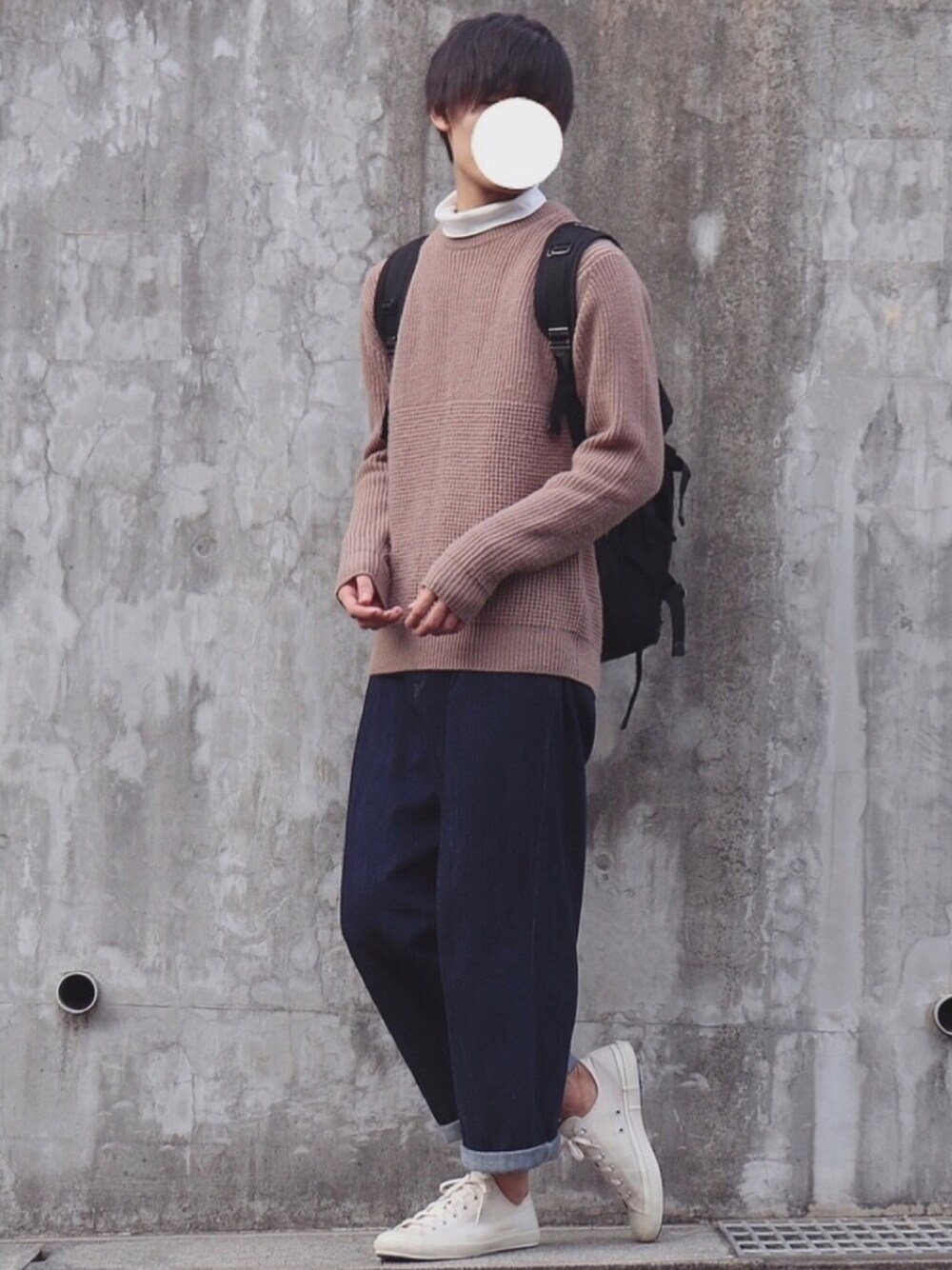 ご覧いただきありがとうございます🙇♂️ ベージュ×ネイビーの相性は抜群です✨ 肉厚のニットにタートルを出してあげると一枚でもかなり暖かいので、オススメです👍