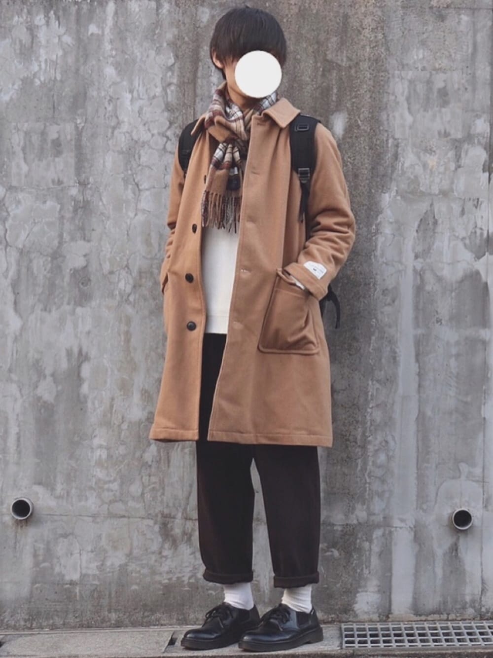 ご覧いただきありがとうございます🙇♂️ 冬の最強コンビ白キャメです👍 ブラウンのパンツと合わせてゆるコーデに! チェックマフラーと合わせてより今年っぽくしました(^^)