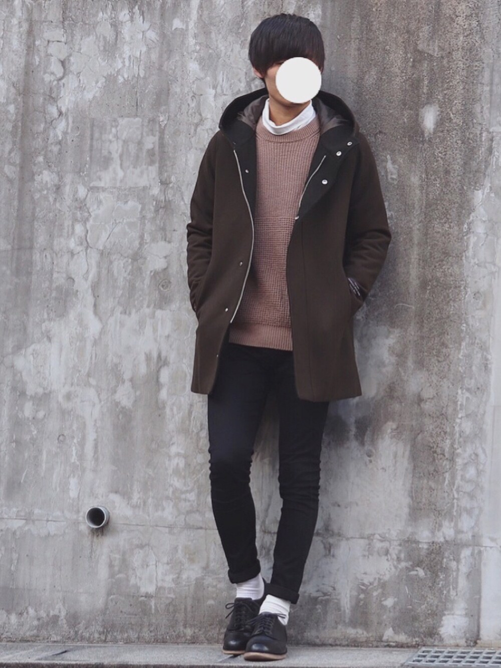 DAISUKE.のチェスターコート「メルトン フーデッド コート」を使ったコーディネート