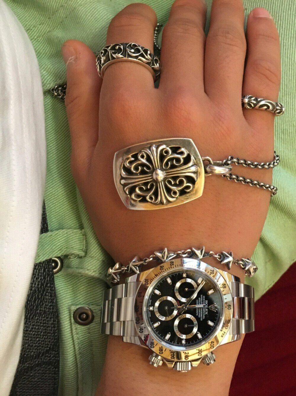 CHROME HEARTSCHROME HEARTSCHROME HEARTSROLEXこの画像から似たアイテムを検索できます1,19912お気に入り (0)120daisukeさんへのコメントNO COMMENTコメントはスマートフォン用アプリからご利用できます着用アイテムCHROME HEARTSCHROME HEARTSリング (シルバー系)リング探すZOZOTOWNで探すCHROME HEARTSCHROME HEARTSリング (シルバー系)リング探すZOZOTOWNで探すCHROME HEARTSCHROME HEARTSネックレス (シルバー系)ネックレス探すZOZOTOWNで探すROLEXROLEXアナログ腕時計 (シルバー系)アナログ腕時計探すZOZOTOWNで探すdaisukeのリングを使ったコーディネート今日の手元コメントを表示2016.5.5着用ブランドCHROME HEARTSROLEXタグ#クロムハーツ#ロレックスモデル情報男性・170cmショートヘアー似ているアイテムCHROME HEARTS × リングCHROME HEARTS × リングCHROME HEARTS × ネックレスROLEX × アナログ腕時計daisuke@daisuke05 / 170cm / MEN / ショートヘアー0コーディネート0フォロワー注目のコーディネートアプリでもっと見るもっと見る