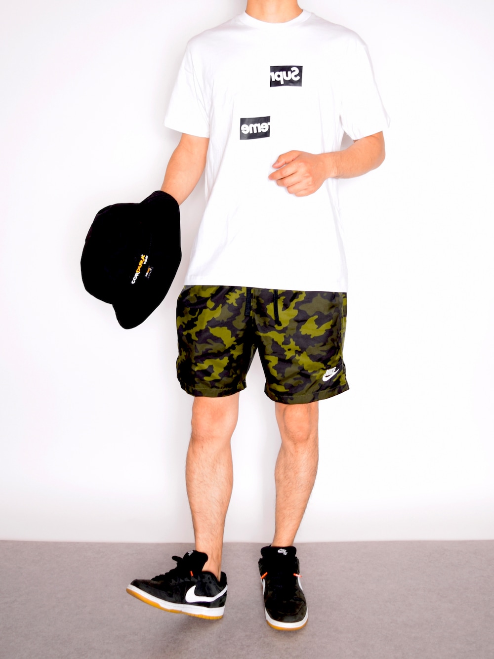 こんにちは😌 本日も僕のコーディネートが皆さんの買い物やコーディネートの参考になると嬉しいです。 「フォロー」や「いいね」よろしくお願い致します☆ トップス supreme × コムデギャルソン / スリットTシャツ Sサイズ パンツ NIKE / カモフラージュ ウーブンショートパンツ Sサイズ スニーカー NIKE SB / DUNK LOW orange label ブラック×ホワイト×ガムソール 26.5cm 帽子 ニューエラ / codura バケットハット 本日は夏のストリートファッションでコーディネートしました。 元々ストリートファッションが大好きで、そこから服を好きになったきっかけとなりました😌 スニーカーのSBダンクは今はプレ値がついてます、、結構お気に入りです。 コーディネートに関して質問などあればお気軽にコメント下さい😌