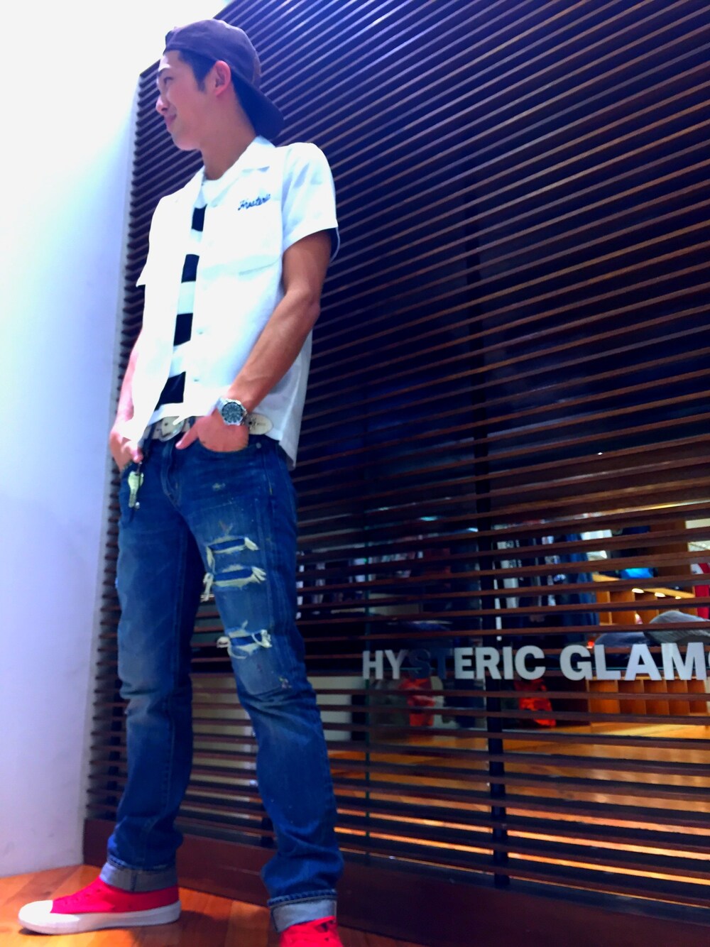 石橋大輔(HYSTERIC GLAMOURラゾーナ川崎プラザ店)のキャップ「WHISKY刺繍 ベースボールキャップ」を使ったコーディネート
