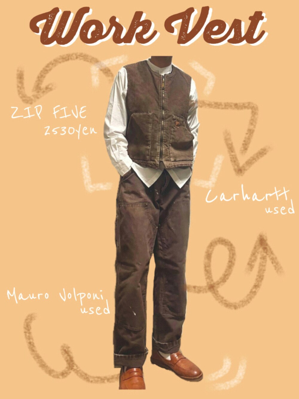 数ある中からご覧頂きありがとうございます🥨 相互フォローしてますので、 良ければフォローよろしくお願いします! 今回はワークベストを基調としたブラウンコーデ。 今年はメンズレディース問わずニットベストがトレンドにも挙がっていますが、少しワーク感の強いベストもこなれ感たっぷりで、大人っぽい印象をプラスできます。 古着屋でも沢山見かけるタイプのベストですので、出会ったら是非試して見てくださいね✨