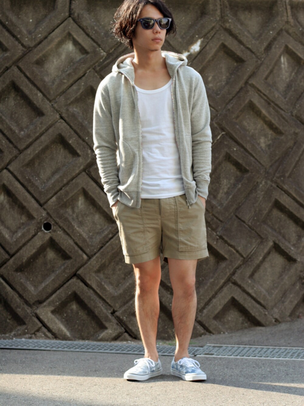 Go ! JAPAN !!! 梅雨入りしたものの結構暖かい日が多く、今日も快晴 というわけで休日のサマースタイルです 愛犬と海に散歩に行く時はこんな具合が多いです ジャクソンマティスのフーディーにインナーはラフにタンクトップ ショートパンツにVANSのオーセンティック ビーチ添いのカフェへGO!!...という感じです