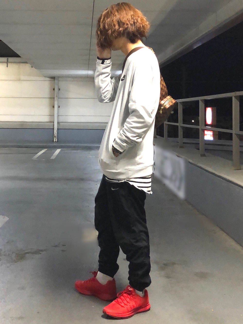 全身NIKEで揃えました。 元々スポーツウェアはNIKEが多いので。 パンツがウィンドブレーカー素材のジョガーパンツなので寒く無いのが嬉しいです。 トップのNIKEはnike advance 15 fleece crewのライトグレーで、袖の手首部分のロゴが気に入ってます!シューズはNIKEオンラインカスタムでカスタムした物です。 バックのジェロニモスは後期型で10年以上前の物を今でも使ってます。 トップサイズ L パンツサイズ S