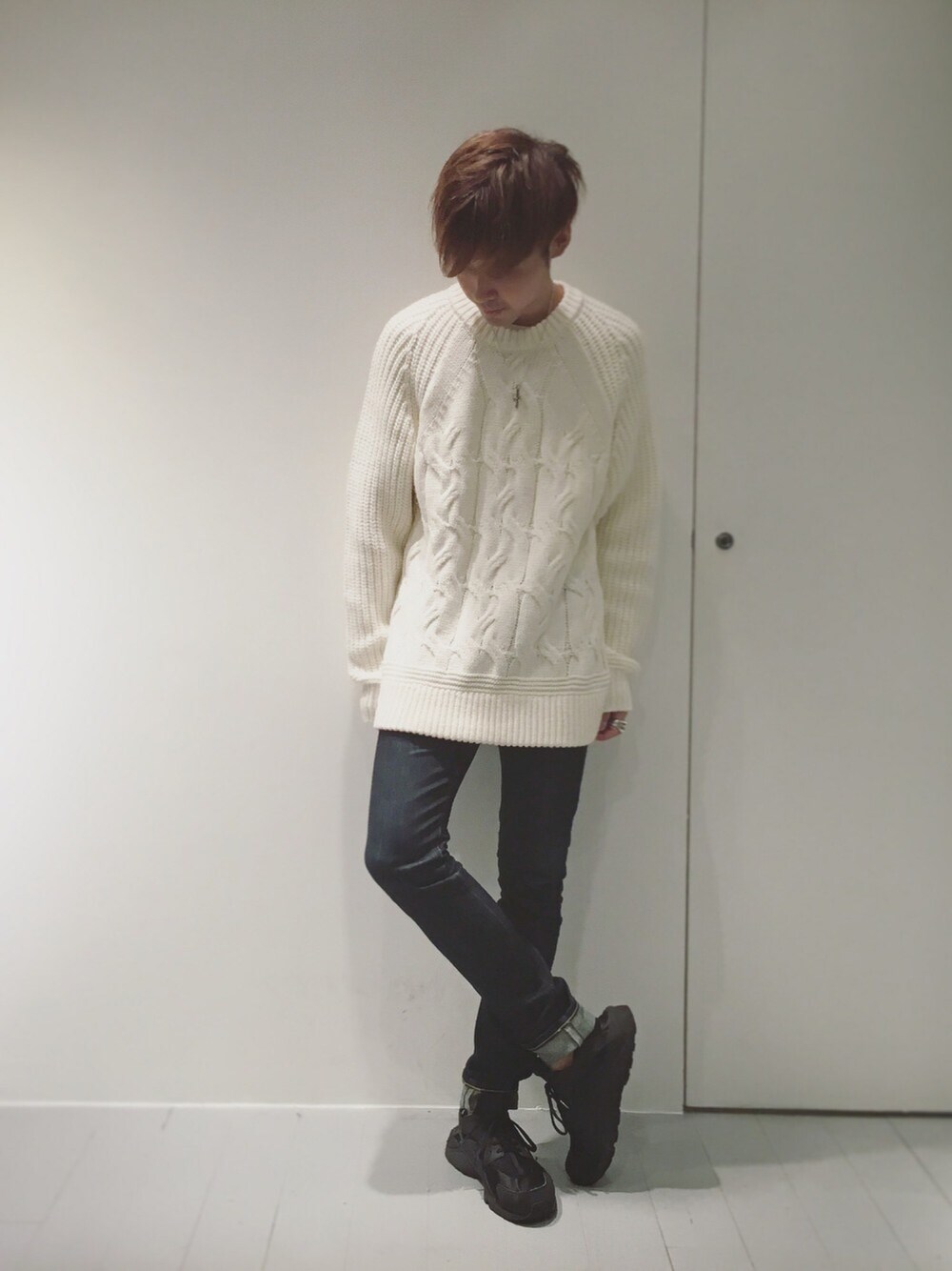 ゆうたのニット/セーター「太ケーブル編ニット」を使ったコーディネート