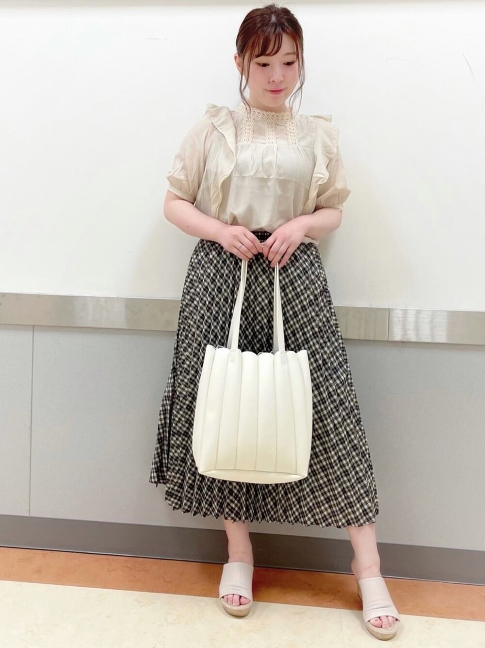 ご覧いただきありがとうございます♡ キューティーブロンドの フリルが可愛いブラウスは 肌触りなめらかで フリルとレース部分がお気に入り✅ チェック柄スカートを合わせて 王道ガーリーコーデに.ᐟ.ᐟ トートバッグは カットラインがカボチャみたいで めちゃくちゃキュートです❣️ A4サイズもすっぽりなので サブバッグとしてもオススメです🙆♀️💓 ワールドオンラインストアでも コーディネート投稿してます👗❥︎:❥︎🔫 シューラルー▷StyleSnap▷▶︎「だいわ」で検索☺︎✓ 📸Instagram @daiwaaaa216 WEARのプロフィール画面にもLINKしてます🥰