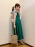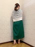ご覧いただきありがとうございますʚ🧸ྀིɞ グリーンのワンピースに ボーダーのカーディガンを ワンポイントに肩掛け◎ ワンピースは長過ぎず 1枚でもスッキリ着て頂けます🎐.*