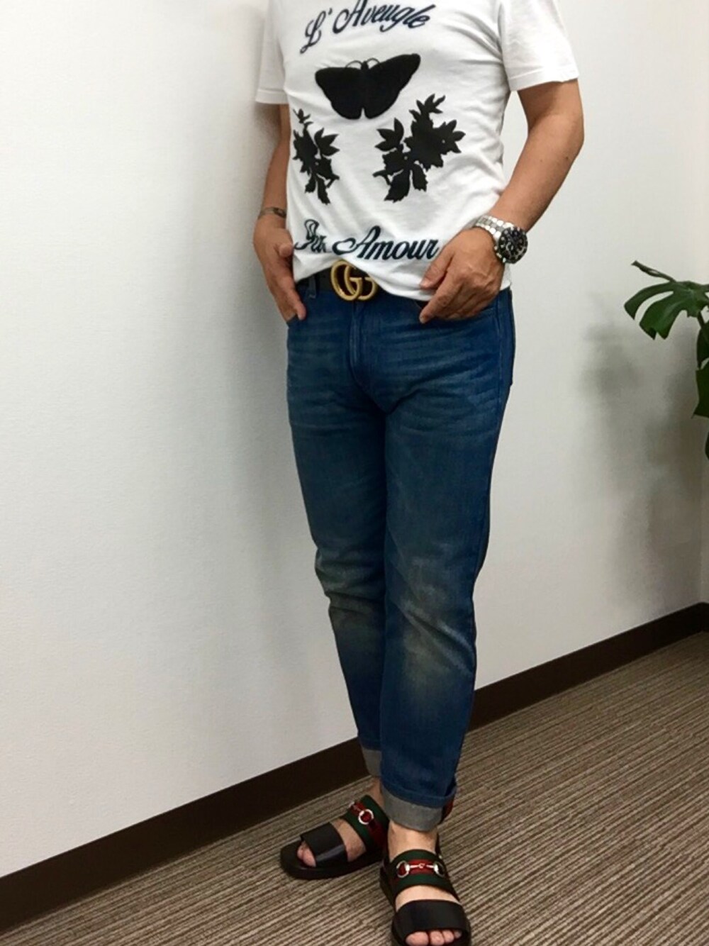 デニムのお直しが終わったのでGUCCIで遊んでもらって、そのまま履いて帰ってきました。
