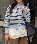 dalbyeol00(Vini)のカーディガン/ボレロ「クルーネックボーダーニットカーディガン」を使ったコーディネート