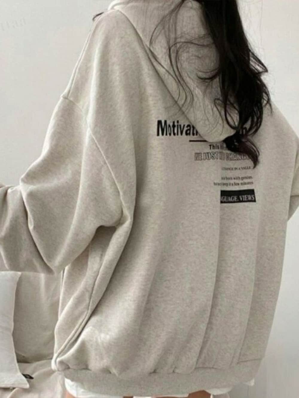 Dalfwinスタッフのパーカー「韓国ファッションMotivationプリントオーバーサイズフーディーパーカー」を使ったコーディネート