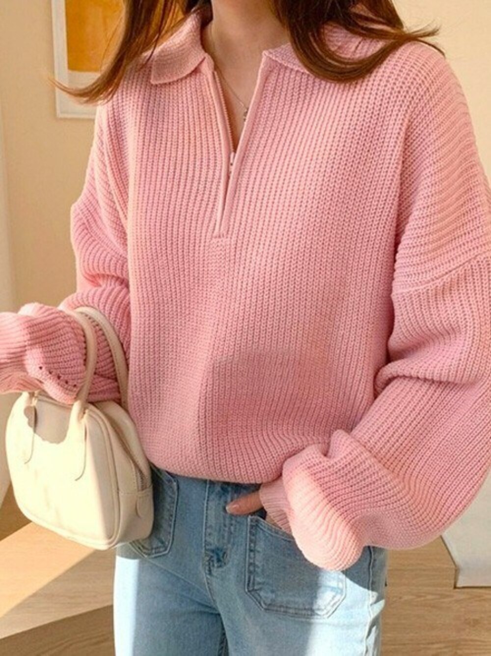 トレンド感抜群ハーフジップニット💌 秋冬もカラーアイテムが注目度高め✨ そのまま一枚で着ても、Tシャツやハイネックトップスをインして レイヤードを楽しむのもオススメです😊💕